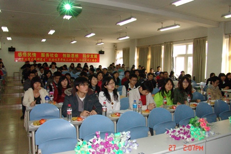 2月27日 ,“2009年研究生寒假社会实践汇报会”在我校阜成路西校区举行,研究生部主任何明珂、副书记熊慧,法学院副院长刘东超,校关工委委员郭新元作为特邀嘉宾出席了汇报会。