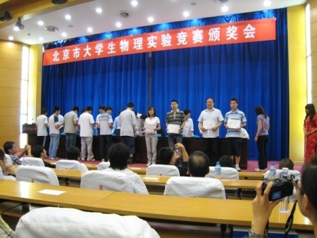 色情片市首届物理实验竞赛颁奖大会于2009年5月22日下午在色情片交通大学科学会堂隆重举行。在京29所院校105个队参加了此次竞赛。竞赛评出一等奖13项,二等奖20项,三等奖34项。由我校软件专业07级学生李冬、王铮和电子专业06级学生李浩三人组成的小组(指导教师:陈晓白)及07级工科实验班的刘锡楠、盛路和陈迪三人组成的小组(指导教师:王秀娥)分别参加了指定项目和自选项目的比赛,他们制作的“非接触测量距离”和“宿舍用电控开关”分别荣获三等奖。