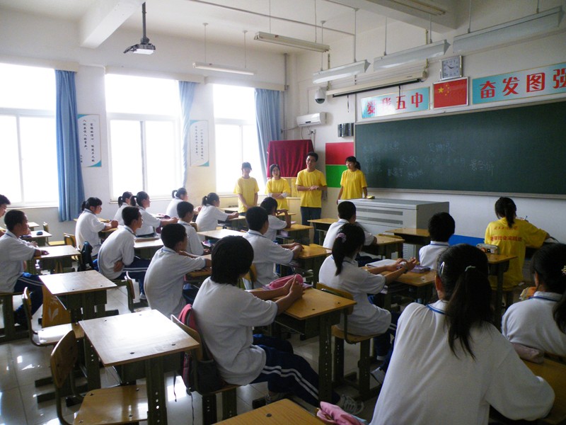 良乡五中学生的良好风貌给我校同学留下了深刻的印象,他们在班级建设中所表现出的蓬勃、向上的精神深深地感染着所有支教同学,他们优异的成绩、对自身严格的要求、近于军队化的管理更赢得我校师生高度的赞赏。短短的半天下来,每一位支教同学都已融入到这种有序而充实的生活中去。一些同学表示,这次实践活动才刚刚开始就已经给他们留下了深刻的印象,通过参加此次活动,他们可以亲自站在讲台上,真切地感受作为一名老师的辛苦和不易。走进郊区中学校园,校园里高配置的硬件设施以及优秀的教师让他们了解到建国六十年来我国教育翻天覆地的变化,百姓生活日新月异,他们也更加感受到自身所肩负的责任。据了解,在接下来的六天学习生活中,材料科学与工程系的支教同学将给良乡五中的同学们带来他们精心准备的更精彩的课程。