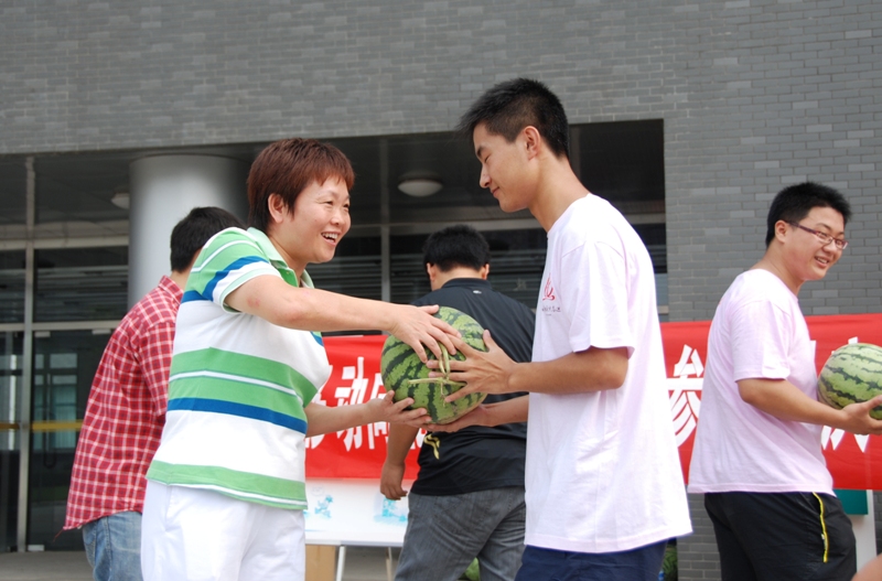 校领导和训练指挥部还非常关注防暑工作。从开训第一天起,训练后勤保障了每一支分队的矿泉水供应;16日上午,学校向每四个训练组员分发一个又大又甜的西瓜以供解暑;同日,学校购买的藿香正气液和遮阳帽也均运抵良乡校区,以学院为单位开始下发。据学校领导介绍,房山区也为参训人员准备了防暑物品,将会在下次训练开始时运抵我校。