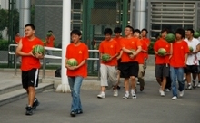 7月16日,是我校国庆游行训练的第四天,也是入伏的第三天。在持续 “桑拿天”的情况下,校领导和国庆任务指挥部坚持以人为本,科学规划培训方案,将训练安排在较为凉爽的早晨和傍晚。还开设了体育、英语、党校培训等课程,丰富队员的业余生活。其中,党校培训已于7月16日开课,有600多位学员参加培训,其它课程也将在近几天内陆续开班。