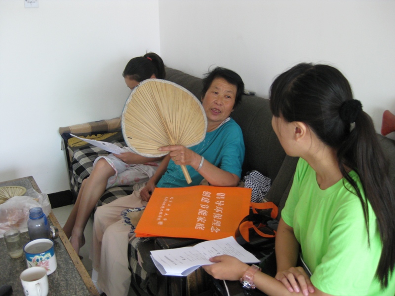 14日上午8点,在实践分团团旗的引领下,全团统一着装,精神饱满,排着整齐的队伍从驻地出发,分赴个工作区。各小组原则上一男一女搭配。大气总悬浮颗粒物监测小组分三个检测点架起机器开始检测;“家庭生态审核”入户调研组分成十一个小组全面对居民展开“地毯式”调研。团员们跃跃欲试,有条不紊的进入了实战状态,一句句“大妈”、“大伯”、“奶奶”、一个个“您”的称谓,一下拉近了当代大学生与村民群众的距离;他们谦虚、诚恳的工作态度和有准备有激情的工作状态树立起了我校学子青春活泼、严谨务实的形象。 一天下来,捷报频传。各调研小组的工作成果大大超出了预想。回到驻地后,在汇报成果的同时也交流了个中酸甜苦辣。 晚上,全团奋战到十一点,在对调查问卷进行科学分析后,进行了认真评估,就农村居民家庭用水、气、电及购物、废物排放等指标提出了详尽的反馈建议。截止到15日上午,第一批“家庭生态审核”问卷建议及评定等级已反馈到售房家庭,受到村民们的普遍认可。