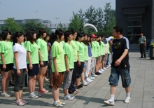 在采访的最后,陈新告诉我们,“面对更加人性化的训练,军队化的‘铁’与老师的‘技术’相结合,走队列的训练不仅停留在训练的层面上,更成为一个素质教育和提高的过程,而且还在三伏天中磨练了同学们的意志品质和体能,是一个很好的提高机会。”他希望更多的同学更认真的,更加全身心的投入到训练当中,用自己的努力,为祖国的60诞辰献上最真诚的一份礼。