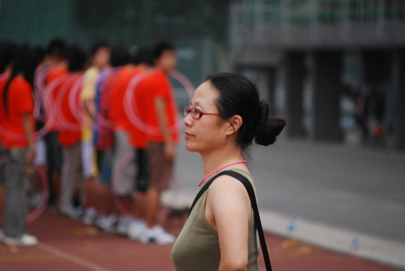 上午10:00,经过几次电话协商之后,记者终于见到了李红老师。因为上午一直在训练的缘故,她的上衣还是湿透的,头发有些微乱,脸上虽然一直带着微笑,却掩饰不住疲惫的影子。由于10:30还要给同学们上太极课,所以为充分利用这有限的时间,从天桥开始边走边聊。虽然这只是简单的一件小事,但从这件小事上却不难看出李红老师对于同学们的理解与关爱。