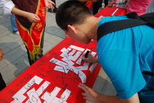 9月24日中午,商学院喜迎建国六十周年系列活动之一的“祝福祖国签字活动”在学生活动中心门口举行。