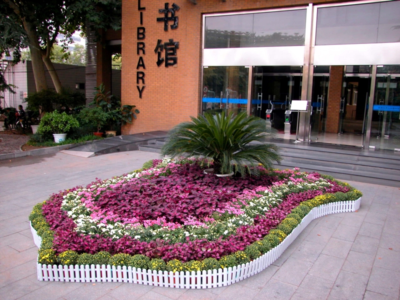 国庆的脚步越来越近,校园的喜庆气氛越来越浓。后勤物业的绿化员工顶着烈日,加班加点地摆放花坛,用鲜花装扮着我们美丽的校园。