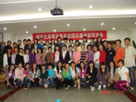 值国庆中秋双节来临之际,研究生部为新一届助管志愿者和贫困生举行了以迎国庆度中秋为主题的联欢会。