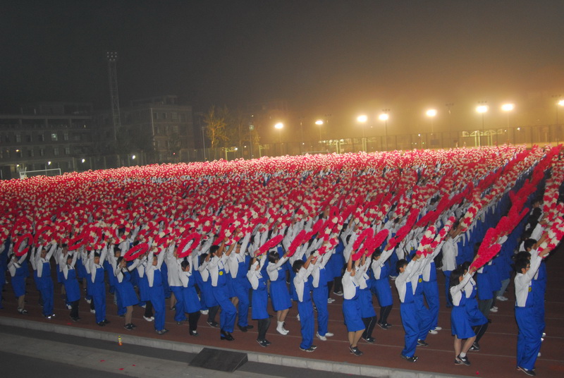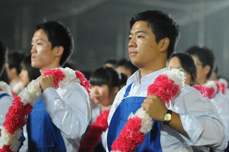 身着蓝色的工装,手持红、白两色的花环,带着饱满的精神,方阵队伍仿佛已经走在了天安门金水桥前。每个人脸上都带着“大战”前的兴奋。出色的合练效果和同学们的全力付出得到了各位领导的一致称赞。