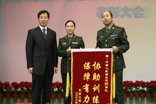 接着,李朝鲜副校长上台宣读了表彰决定。学生处等20个单位,王立红等80名教师,计算机与信息工程学院等28个团队,徐鑫等700名学生受到了表彰(名单另发)。王尚忠副校长为受到表彰的组织及个人颁奖,并代表学校向承训部队赠送了锦旗。