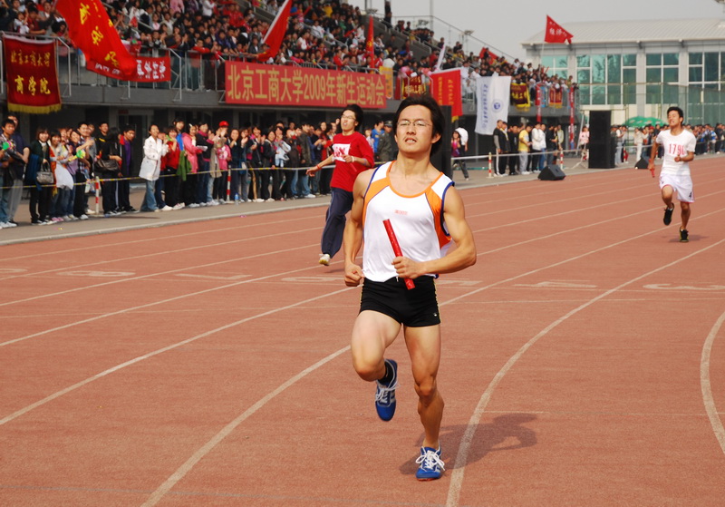 在24日上午举行的男子四百米比赛中,1407号,来自商学院会计093班的佟志华以56’’6的成绩摘得我校2009年新生运动会的“第一金”。1345号,计信学院刘硕,1208号,机械学院郭文元,分别以57’’、59’’2的成绩获得第二、第三名。