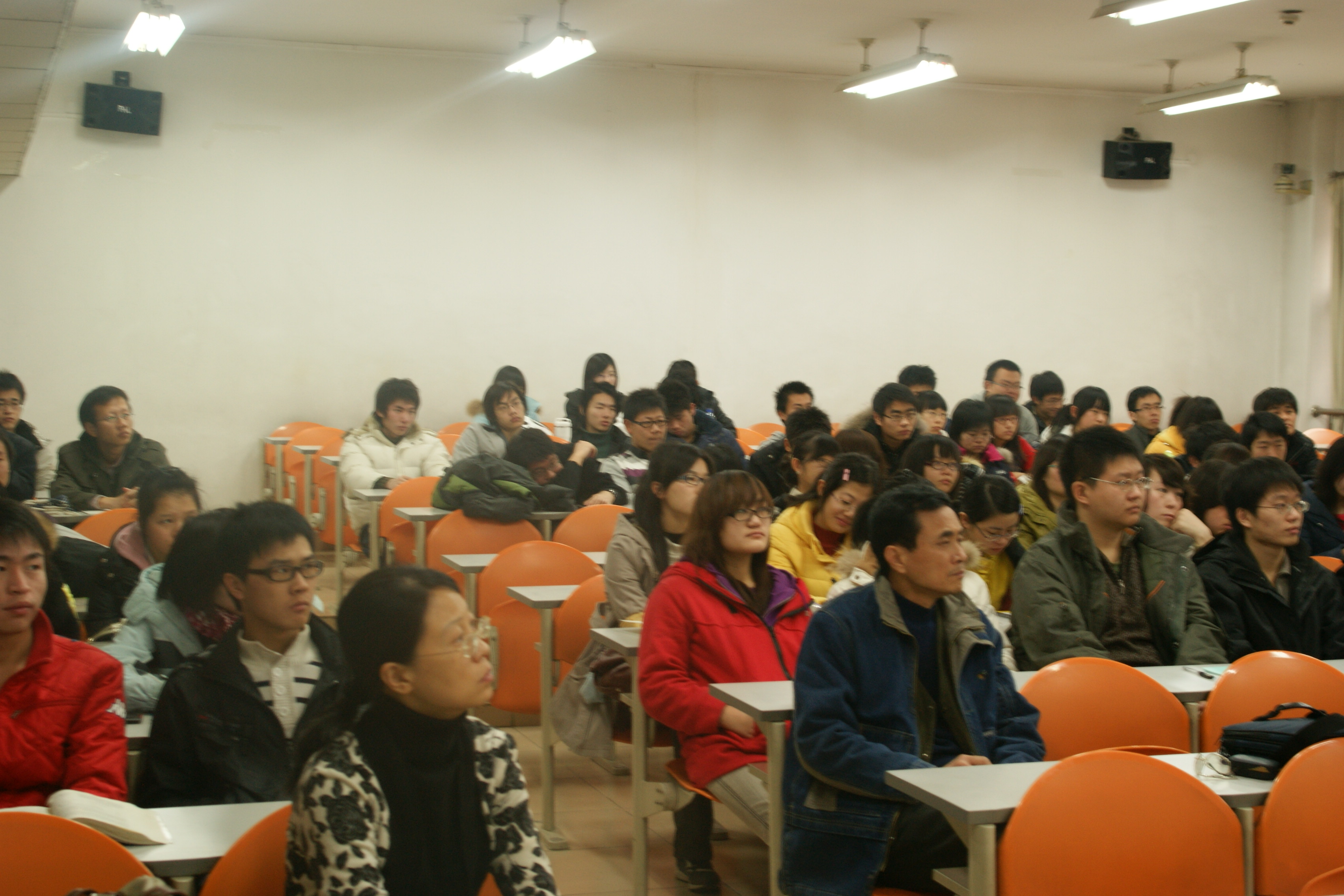 陈老神采奕奕,慷慨激越,感染着在场的青年学子。他希望大家“牢记历史,开拓创新,从胜利走向另一个胜利”。全场以热烈的掌声表达了对陈老崇高的敬意和真诚的谢意。