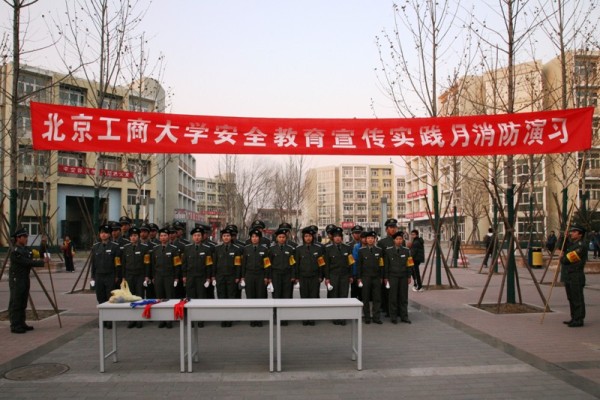 为落实学校关于开展安全教育宣传实践月的活动方案,加强师生员工安全意识,提高安全防范技能,构建平安校园、和谐校园,12月22日下午,学校防火安全委员会在良乡校区五组团对大一新生和后勤人员组织了大规模的消防演习活动。校党委副书记、学校安委会主任、消防演习总指挥卢思锋和副校长呼文亮亲临现场;房山区消防支队徐进团警官到达现场亲临指导;良乡派出所警官王高虎和良乡高教园区办公室杨主任作为嘉宾出席了演习现场。