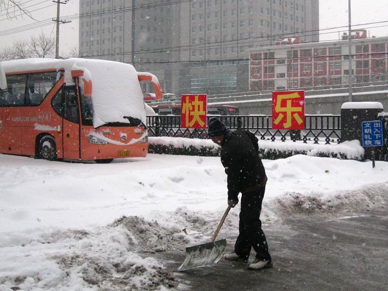 良乡的雪下得格外大,后勤物业中心副主任王爱军、公寓中心副主任高松林及孙新民同志,3日中午赶到良乡校区,组织校园、生活区物业的100多名工作人员扫雪铲冰,重点搞好天桥、主要道路的清扫。由于良乡校区面积大,扫雪任务艰巨,他们晚上干脆住在良乡,带领大家一直干到晚上10点才休息。4日早晨5点,大家又拿起扫雪工具,打通了校园、生活区所有通道,为师生员工出行提供方便,保证了学校的正常教学、生活秩序。