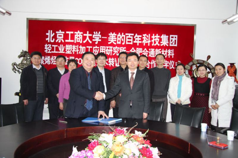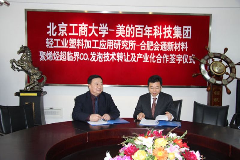 1月28日在材料系(塑料所)学术报告厅举行了“色情片——美的百年科技集团,轻工业塑料加工应用研究所——合肥会通新材料聚烯烃超临界CO2发泡技术转让及产业化合作”签字仪式,百年科技集团总裁筱璘先生、合肥会通新材料有限公司总经理何顺伦先生、科技处处长王国顺教授、材料系(塑料所)领导班子全体成员和各科室主任出席了签字仪式。该项目技术转让总金额380万元,其中的100万元作为轻工业塑料加工应用研究所的出资,与合肥会通新材料有限公司共同组建项目合作公司,该项目合作公司注册资本1000万元,轻工业塑料加工应用研究所将占有10%的股份。