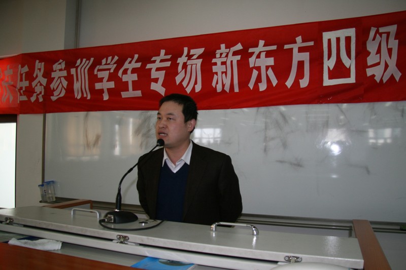 课前,校团委书记吕良做开班动员。他介绍了本次国庆任务参训学生专场新东方四级辅导班的开课情况,并向同学们提出了要求,他强调,我校开设本次四级辅导班,既是履行对国庆任务参训同学的承诺,也是对大家的一种激励,希望同学们认真学习,严格要求自己,珍惜机会,取得进步。随后,新东方的老师为同学们带来了精彩的教学。他授课讲解清晰,重点突出,风趣幽默,赢得同学们阵阵掌声。