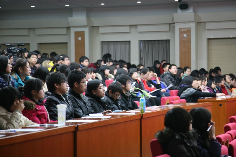 在接下来的近两个小时的时间里,姚洪越老师结合自身多学科知识背景,结合两会的相关内容,用生动幽默的语言,对中华民族复兴的历史进程、主要机遇、挑战和美好前景等问题给与了科学的解读,对如何在中华民族复兴中实现自我的发展,与时携进,创造个人美好而辉煌的人生提出了自己的见解。姚老师谈吐亲切自然,言语风趣,思维敏捷,讲解清晰,引起在场同学强烈共鸣。