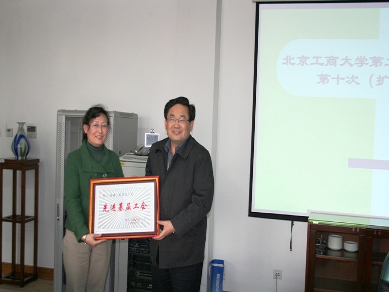 会上,张德玉同志为经济学院等5个获得先进基层工会称号的单位、机械工程学院等11个建家升级的单位颁发了奖牌。