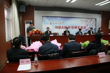 见面会由商学院书记庞毅主持,他向大家介绍了来宾,学生们向导师们献上了鲜花。科技处处长王国顺致欢迎辞,对各位专家受聘我校MBA校外导师表示欢迎和感谢,并且呼吁MBA学生把握难得的机会,与专家进行沟通,将理论知识与企业管理实践相结合,提升自己的理论水平,增加实践能力。