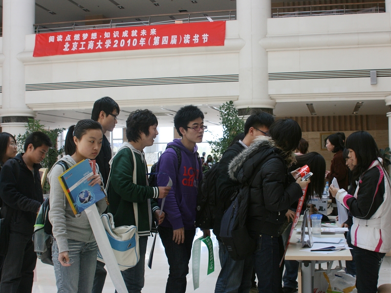 在“阅读点燃梦想,知识成就未来”为主题下,我校第四届读书节系列活动从4月19日开始在两校区展开。从读书节标志征集、读书之星的评选、60种优秀图书书评展、组织师生走访美国驻华大使馆图书馆,到23日世界第15个读书日系列活动达到高潮。