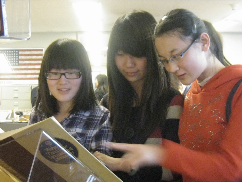会馆主任及工作人员热烈欢迎老师同学们的到来,首先,美国驻华使馆信息中心大中华区负责人致欢迎辞,希望大家能够经常来中心查阅资料,更加深入了解美国,她表示中心全体工作人员会全力提供服务。在工作人员的引导下,同学们浏览了馆藏珍贵原版书籍。中心负责人详细介绍了中心职能、馆藏资源等情况,并演示了ProQuest数据库的查询操作。同学们认真听讲,踊跃提问,得到了中心人员的肯定与赞扬。随后,大家欣赏了耶鲁大学精致的宣传片。