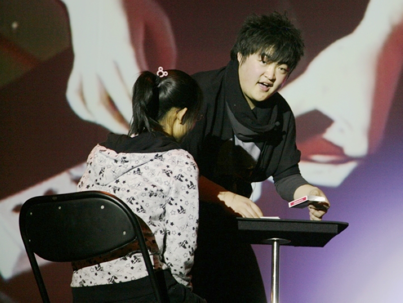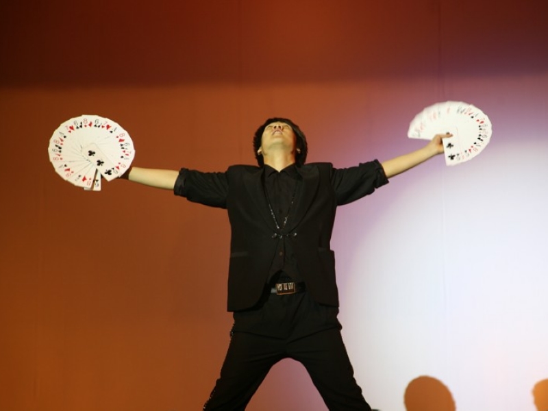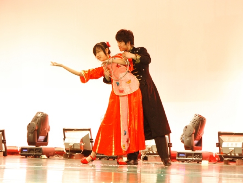 晚会中,魔术师分别表演了自己的拿手好戏,突破了传统的魔术表演,引入最新的时尚表演手法、对舞美重新进行了巧妙的编排,道具的准备更有特点,深深震撼在场观众。众多零距离互动魔术,让同学们感受到神奇的魔术魅力,传统的舞台魔术表演也同样引人入胜。其中,魔术师李苏阳一出场,整场就充满中国喜庆的红色调,他空身上阵可以变出数十把伞,使整个文体馆充满了魔力。更值得一提的是,曾获得两岸四地全国大学生魔术比赛近景金奖魔术师李其伦,为广大同学表演了他的绝活,他用玻璃罩罩住高脚杯,在双手不触碰玻璃罩的情况下,用意念把高脚杯震碎,引发台下阵阵欢呼。这个表演反映了魔术的创新意念,表演中的手法难度高,一系列原创独特的魔术效果,让现场同学感受到魔术的非凡魅力,赢得满堂喝彩。