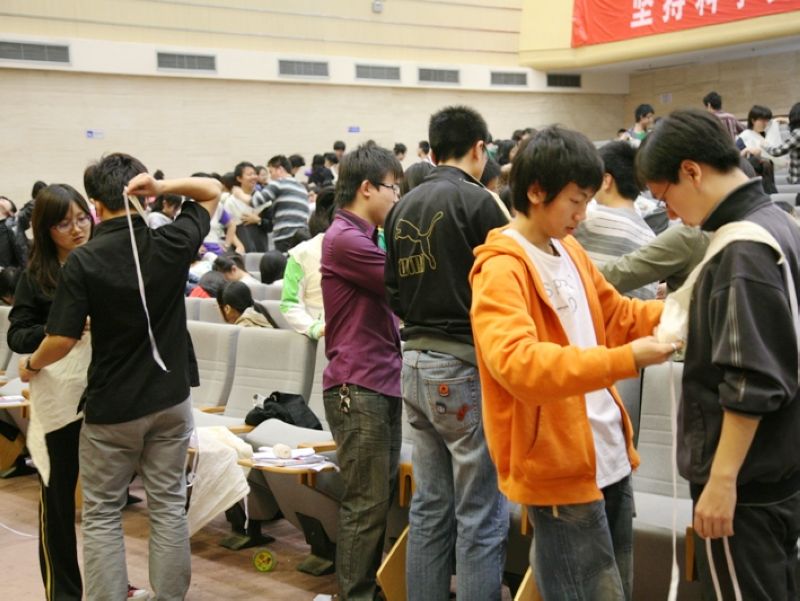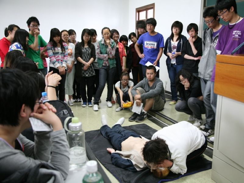 5月9日的培训中,校庆志愿者们根据不同的培训内容,分别在良乡校区A报告厅和文二楼的5个教室接受培训。这次培训主要是将第一天学习的急救理论知识运用到实际操作中来,目的是为了加强校庆志愿者们对急救理论知识的理解和临场自救、互救的能力。