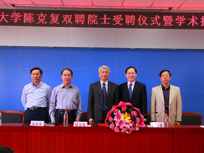 校党委书记孙尧东代表学校党政领导班子和全校师生员工对陈院士的加盟表示最热烈的欢迎和最衷心的感谢。孙尧东同志强调,陈克复院士加盟我校必将提升我们的实力和勇气,必将增强学校的办学特色和水平,必将促进学校“人才强校”战略的实施。孙尧东同志代表学校党政领导班子和全校师生员工衷心预祝陈克复院士在我校工作顺利,生活愉快!