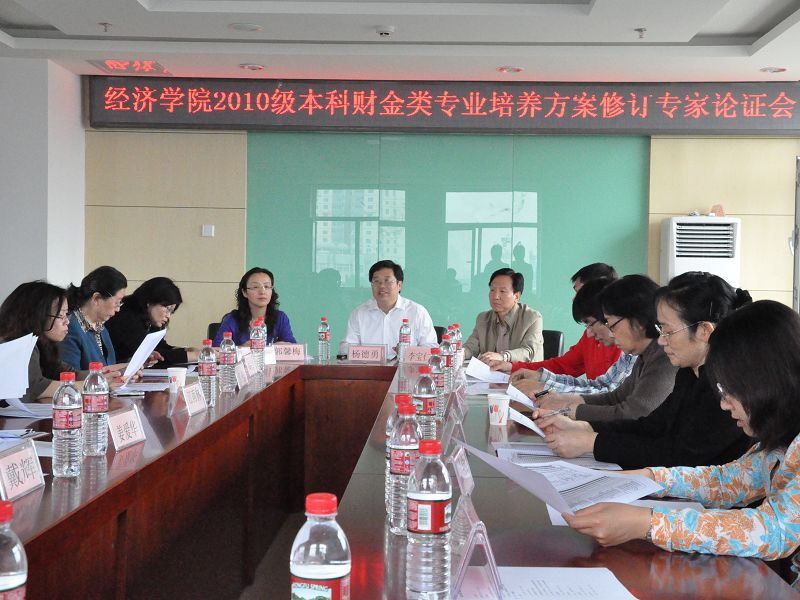 5月14日下午,经济学院2010级本科财经类专业培养方案修订专家论证会在阜成路举行。经济学院院长杨德勇和书记李宝仁出席会议,会议由教学副院长郭馨梅主持。