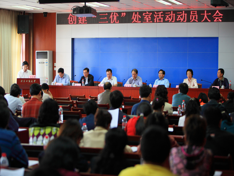 5月13日下午,学校在阜成路校区召开了创建“三优”处室活动动员大会,校党委书记孙尧东要求党政机关和工作人员要从管理型向服务型转变,从管理者向服务员转变,把党政机关建成师生满意的服务型党政机关。校党委副书记兼纪委书记张德玉做了动员报告。校办主任吉涛主持大会。