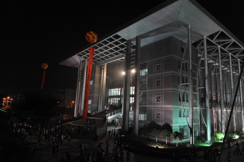 图书馆、行政楼、环形文楼等建筑物也在灯光的装扮下显示出了最为骄人的一面。