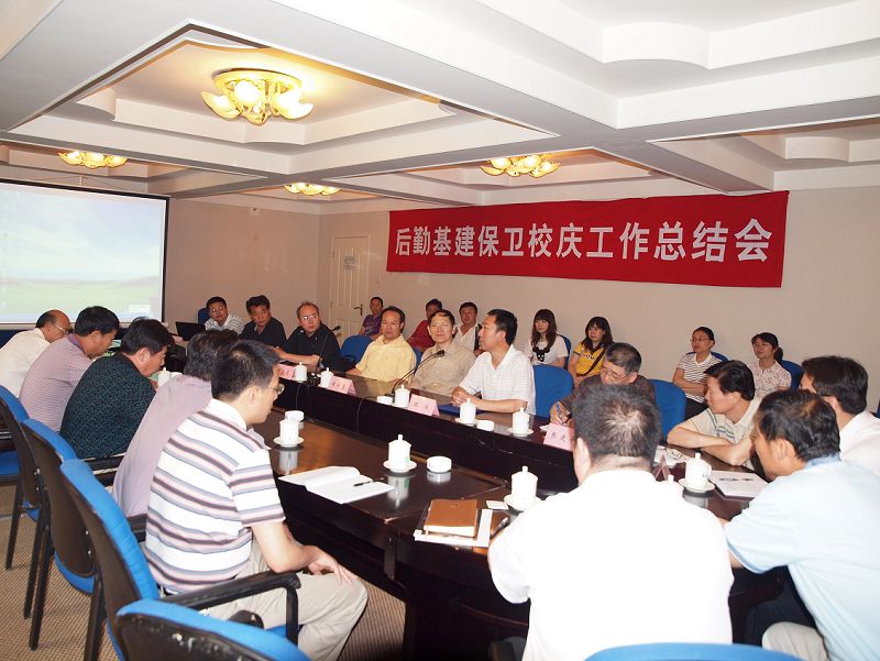 6月26日下午,学校后勤管理处、规划建设处、保卫处三个部门召开了校庆工作总结会,会议由后勤管理处处长魏冰主持,校长谭向勇和副校长呼文亮出席会议并作了重要讲话。