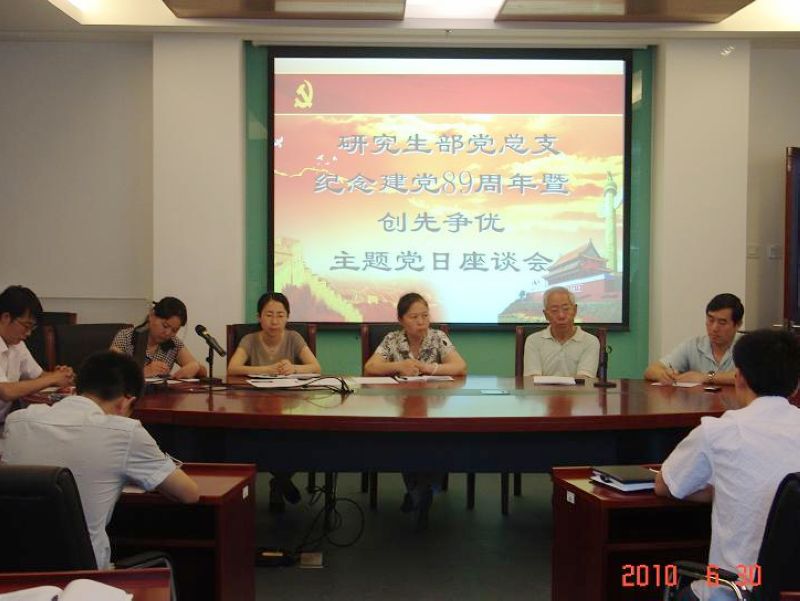6月30日下午,研究生部党总支召开了纪念建党89周年暨创先争优主题党日座谈会。出席座谈的领导有学校组织部副部长李跃萍,学校关工委副主任、原轻工学院党委副书记丁士堃教授,研究生部主任何明珂教授,研究生部党总支书记兼研工部部长董竹娟。座谈会由研究生部党总支副书记兼研工部副部长熊慧主持。