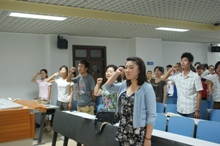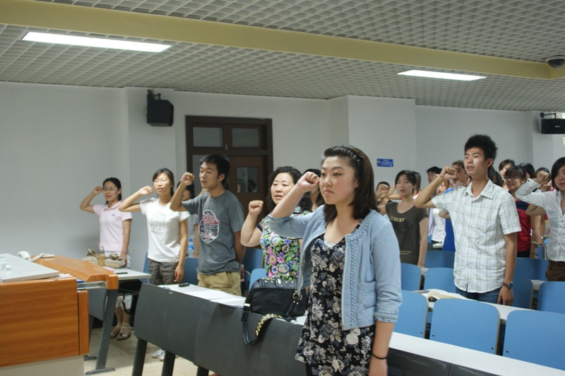 在本次纪念活动中,有4名入党积极分子光荣的加入中国共产党。会议上,全体党员在鲜红的党旗下举起右拳重温入党誓词,党总支副书记杨艳萍向全体学生党员传达了《关于在全校基层党组织和党员中深入开展创先争优活动》的实施方案并发出号召:希望各位党员发挥先锋模范带头作用,积极学习,认真完成上级党组织要求的学习任务;带头遵纪守法,弘扬正气;带头创新,提高专业成绩,积极参加校、院各种科技创新活动,争做成才表率,带动同学们共同进步。