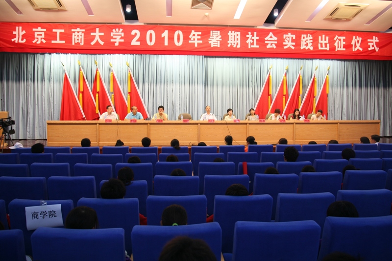 7月21日上午,我校2010年暑期社会实践出征仪式在良乡校区B报告厅举行。校党委副书记卢思锋出席仪式,各学院党总支副书记、2010年暑期社会实践各院系分团带队老师以及300余名参加社会实践的学生代表参加会议。