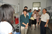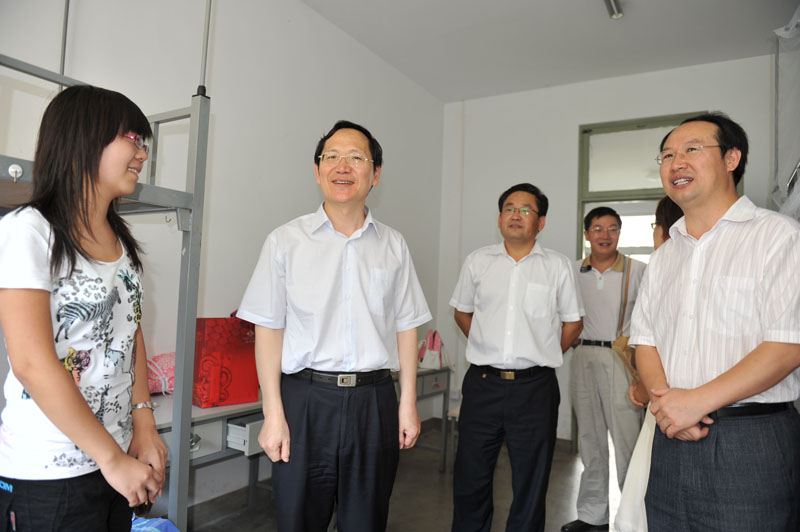 在校领导孙尧东、谭向勇、卢思锋、张德玉、李朝鲜、呼文亮的陪同下,赵佳琛兴致勃勃地走进校园,亲身感受我校新生入学的盛况。她先后来到新生接待处、宿舍、餐厅等地看望新生及家长。