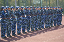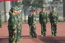 一排排身穿迷彩服装的同学在教官的悉心指导下呈军姿站立,场面十分壮观。以往优美的校园今日多了几分英武之气。今天上午的训练科目有立正、稍息、跨立、敬礼、停止间转法等。