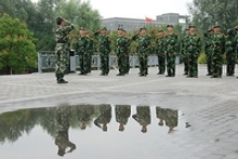 9月3日,2010级新生军训团接受了第二次风雨洗礼。一大早,湿漉漉的道路上,依然能看见一个个英气的迷彩身影。虽然大雨不断、雨势不减,2010级军训学员还是早早起床,8:30准时到指定场所集合,军训热情有增无减。