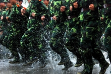 操场上又是另外一番热烈的景象。雨势减小,二营的学员们迅速从看台撤离,抓紧每一秒钟进行练习,训练又如火如荼地开始了。先是绕场跑步两圈,接着是踏步练习。没有人在意湿滑的地面、积水的坑洼,整齐划一的动作、踏实稳健的步伐、响彻校园的喊声,昭示了他们此刻高涨的热情。