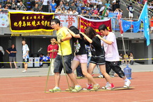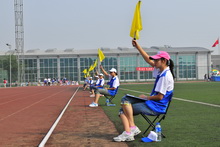 在“障碍迎面接力”的比赛场地,记者第一次感受了这项本次运动会的新项目带给同学们的惊喜。上午10:40,迎着炙热的骄阳,“障碍迎面接力”比赛开始。起点站10名女生,对面站10名男生,50米的赛道上设置了3个海绵垫和2个呼啦圈。参赛队员要跨过海绵垫,转过呼啦圈,将手中的接力棒传给同伴,最先完成接力的队伍获胜。最终计算机与信息工程学院获得冠军。