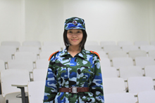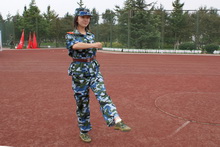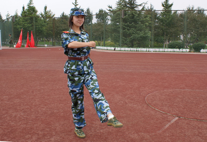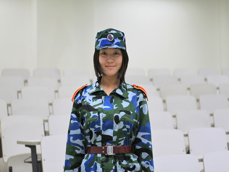 初见秦曲,她骑着自行车,一身迷彩,短发齐耳,脸上带着微笑,文静却略显柔弱。“我身体并不好,但是我练过舞蹈,也接触过很多军人,这些经历培养了我的精神,面对新的挑战,我能坚持下来。”这个看似文弱的小女孩儿,却有着坚毅的性格。“初中军训时候我是学校的护旗手,当时教官对我进行了特别的训练,所以我可能很快适应这次的军训生活。”秦曲微笑着说。