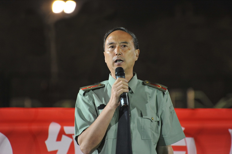 身着白衣黑裤的校合唱团齐声高歌《领航中国》与《走向复兴》之后,在联欢会中与军训带队老师一起并领唱《当兵的人》的卢思锋书记发表讲话,该时,全体起立。大学军训即将结束,他对军训以来15天所取得的成绩进行了肯定,他说:“一是学生表现良好,二是教官积极努力,三是院系工作到位,四是后勤保障安全有力,最后学校组织指挥科学合理。”希望学生教官老师以及各职能部门继续努力并表达了对9月10日汇报表演的期待。