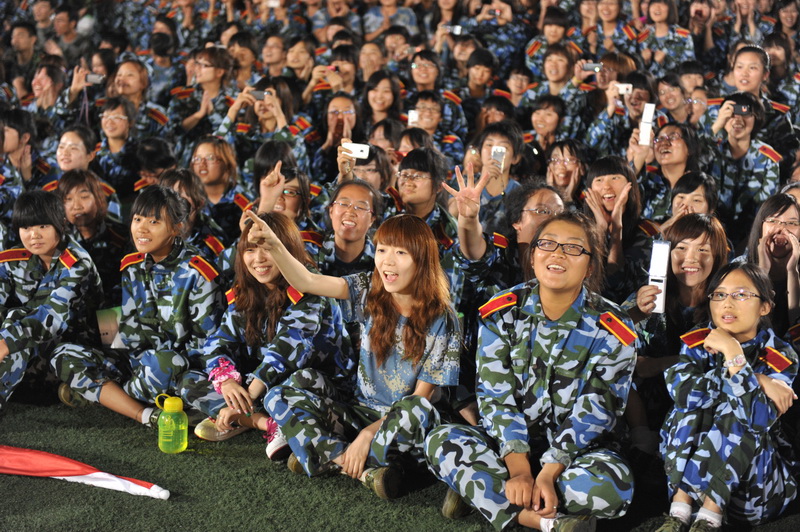 联欢会结束后,学生们在教官的指挥下有序散场。