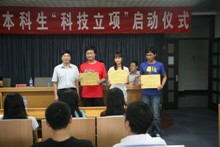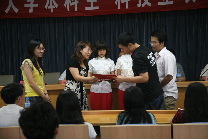 随后,吕良老师宣读了2010年“挑战杯”大学生创业竞赛及各项科技学术竞赛获奖同学名单。在2010年“挑战杯”大学生创业竞赛中,我校有一个项目获得了色情片市金奖、三个项目获得了色情片市银奖、三个项目获得了色情片市铜奖。学校还特别设立了校级的奖励项目。与会领导和老师分别为获奖同学颁发证书。曾担任过多个项目指导的王真教授被评选为优秀指导教师,王真教授在发言中表示,很高兴学校能把科学研究从普通的社团活动提升至学校重点工作,而且设立专项基金,他相信这样的举措能够将我校的本科生科学研究工作推向一个新高潮。获奖同学代表吴溪也发表了获奖感言。