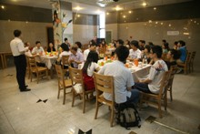 9月15日下午,学校为校舞蹈团在良乡校区文科实践中心一层餐厅举办庆功会,以庆祝他们的作品《校园变奏曲》在第7届中国舞蹈“荷花奖”校园舞蹈大赛中获得作品银奖。党委副书记卢思锋、教务处处长张晓堂、体育与艺术教学部主任顾红,副主任吴智鹏以及艺术团指导老师、教务处、团委等相关老师出席,校舞蹈团的全体同学以及合唱团、管乐团的部分代表参加此次庆功会。庆功会上还请到了《校园变奏曲》编导毛磊老师。这次庆功会分为座谈会和庆功宴,团委书记吕良主持。