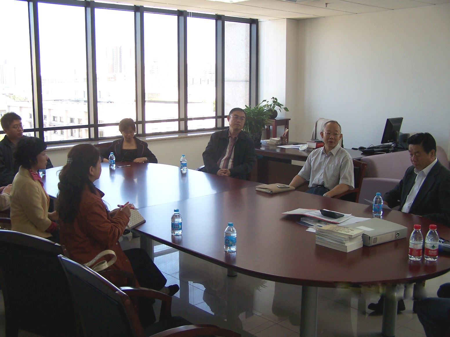 参观结束后,对外经济贸易大学主管副校长胡福印、图书馆馆长邱小红与郭书记、李副馆长及相关部门主任针对两校“十二五”规划的构建、图书馆如何为学校教学和科研提供更完善服务、队伍建设、学科馆员等共同关心的问题与我们进行了深入细致的探讨。