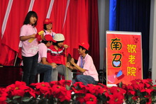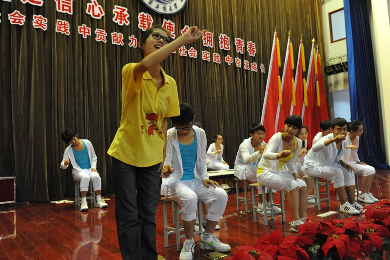 在暑期社会实践成果展示环节中,9个院系参加暑期社会实践的同学们利用视频展示、情景短剧表演、访谈、三句半、朗诵、新闻播报和快板等别具一格、创意新颖的形式展示了他们的暑期社会实践成果。