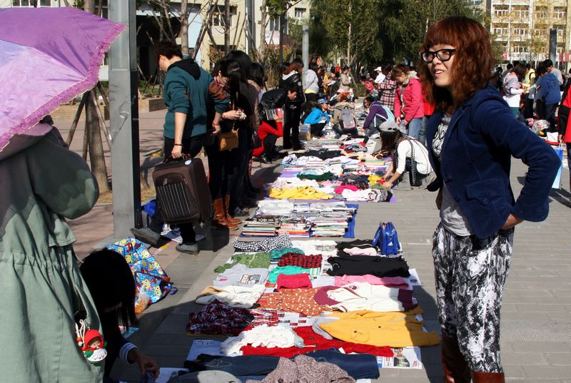 当日中午,在学生生活区还举办了“跳蚤”市场。“跳蚤”市场以废旧物品循环利用、提高节约意识的目的。同学们热情踊跃参与,活动现场气氛热烈。