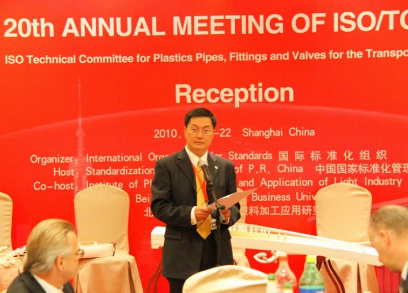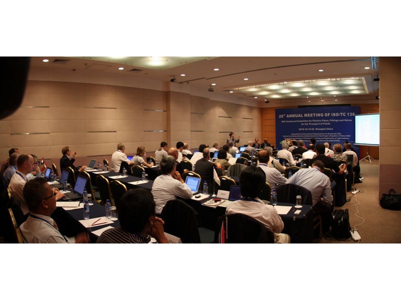 ISO各技术委员(TC)的会议定期在不同国家召开。本次TC138的会议即是“流体输送用塑料管材、管件及阀门标准化技术委员会(TC)”的工作会议。TC138下设7个分技术委员会(SC):分别为污、废水和排水 (包括农用排水)用塑料管材和管件分技术委员会(SC1)、供水用塑料管材和管件分技术委员会(SC2)、 工业用塑料管材和管件分技术委员会(SC3)、气体燃料供给用塑料管材和管件分技术委员会(SC4) 、塑料管材、管件、阀门及其他配件的一般性能、基本试验方法及规范分技术委员会 (SC5) 、 各类增强塑料管材和管件分技术委员会(SC6) 、 阀门和塑料附属设备分技术委员会(SC7)。本次上海会议除TC138大会外,还召开了各SC会议及工作组会议(WG)20场。