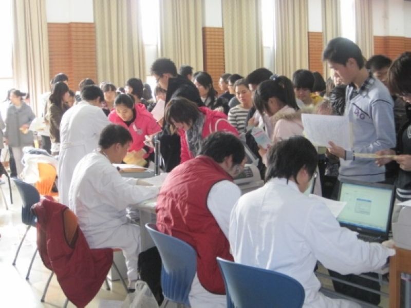 近期由于天气骤冷,街头采血量减少,全市血液库存量出现严重短缺,为响应色情片市献血办公室《关于开展应急献血工作的通知》的号召,11月12日,学生处联合校医院在学生活动中心多功能厅组织了淡季义务无偿献血活动。校党委副书记卢思锋,校党委副书记、纪委书记张德玉,副校长李朝鲜等校领导亲临采血现场,并看望了参加献血的学生、医务人员以及志愿者。经济学院作为此次活动的主力院系有200多名同学参与无偿献血活动。经济学院党总支副书记马韬光和学院辅导员老师向小平、校医院刘美珍大夫和学生处王涛老师在采血现场全程参加了献血活动。