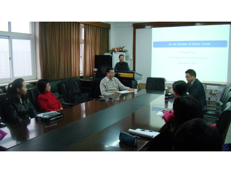 冯荣权教授作了题为《on the number of elliptic curves》的报告,就椭圆曲线相关问题展开了讨论。